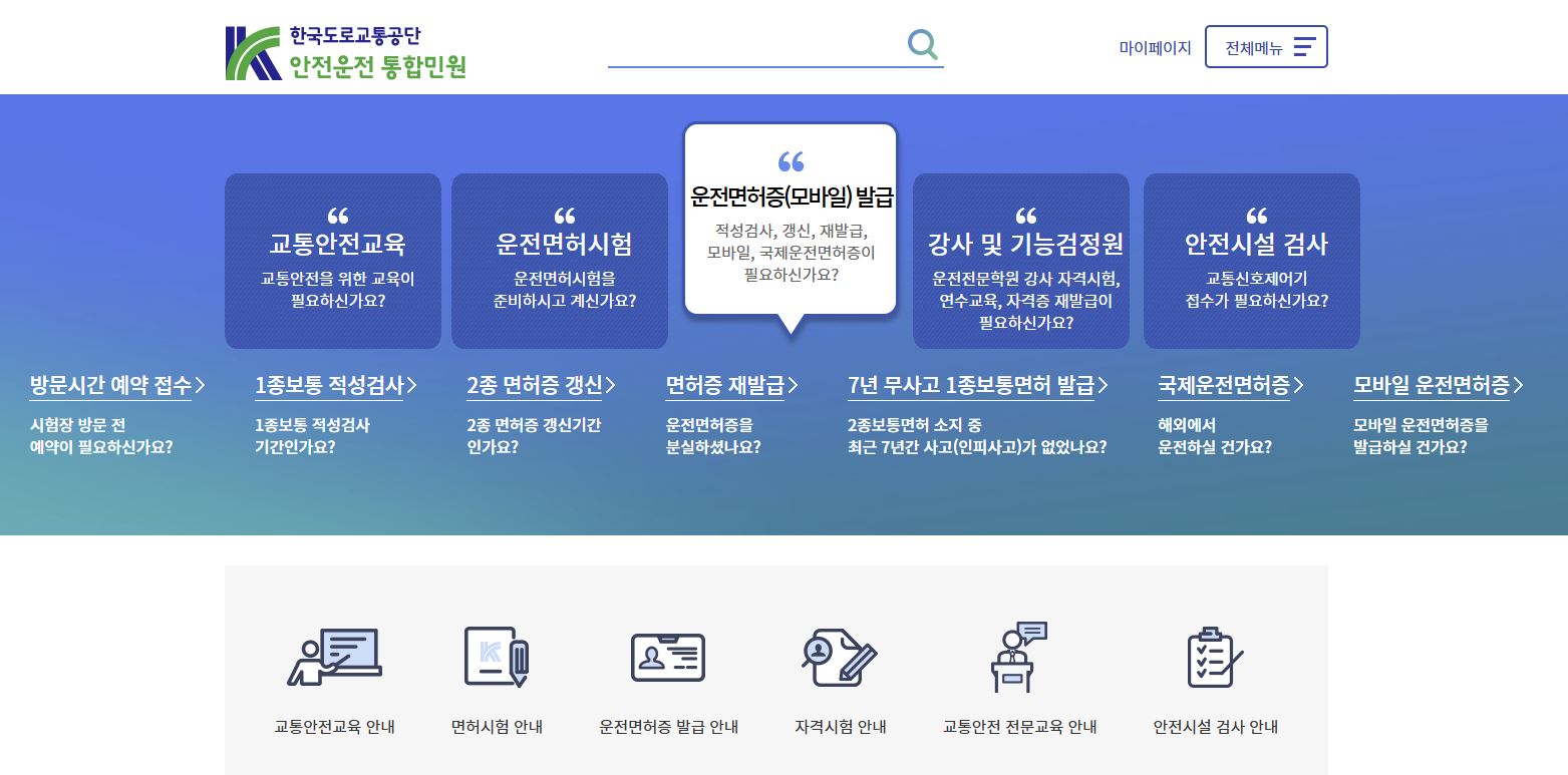 안전운전 통합민원 바로가기 → 온라인 갱신/적성검사 예약