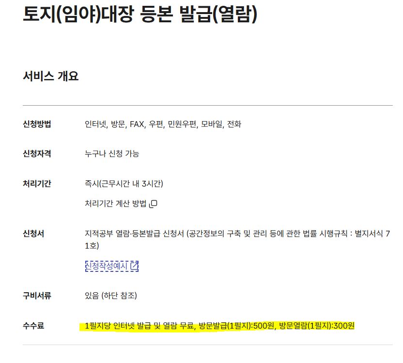 토지대장 무료열람 시 주의사항