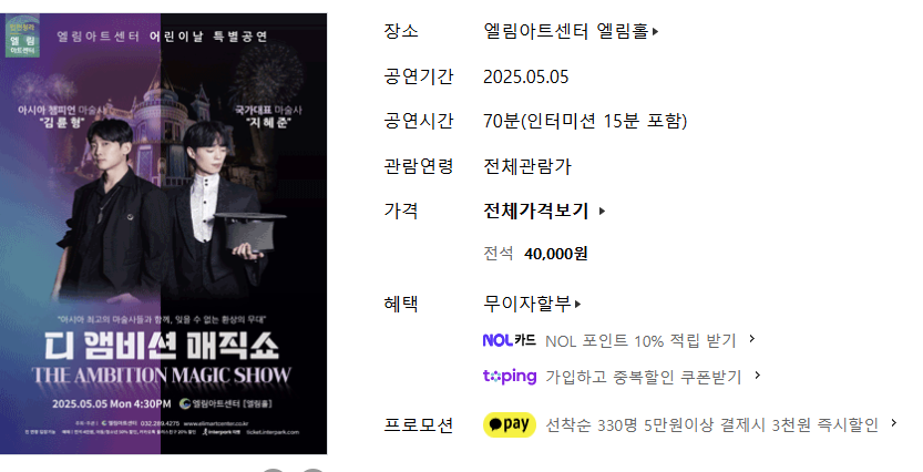 아이의 감성과 집중력을 길러주고 싶다면 엘림아트센터에서 열리는 어린이날 콘서트를 추천해요. 온 가족이 함께 즐길 수 있는 편안한 클래식 공연으로, 70분간 이어지는 무대는 따뜻하고 편안한 분위기에서 진행됩니다.