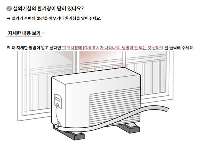 - ⛔ 필터 먼지/냉매 부족 → 냉방 성능 저하